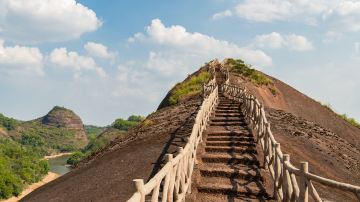 弋阳卧佛位于上饶市弋阳县龙门岩安家落户,该卧佛全长416米,佛身高差68米,系利用山势雕琢而成,自然山体展示着令人震撼的释迦牟尼涅盘群图的艺术神韵。山底岩洞相传为神禹所凿,因石骨盘绕如巨龙而名龙门岩。