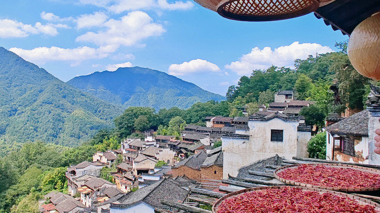 挂在山崖上的篁岭古村,地无三尺平,数百年来,村民早已习惯用平和的心态与崎岖的地形“交流”,绘就出了一处“晒秋人家”风情画。