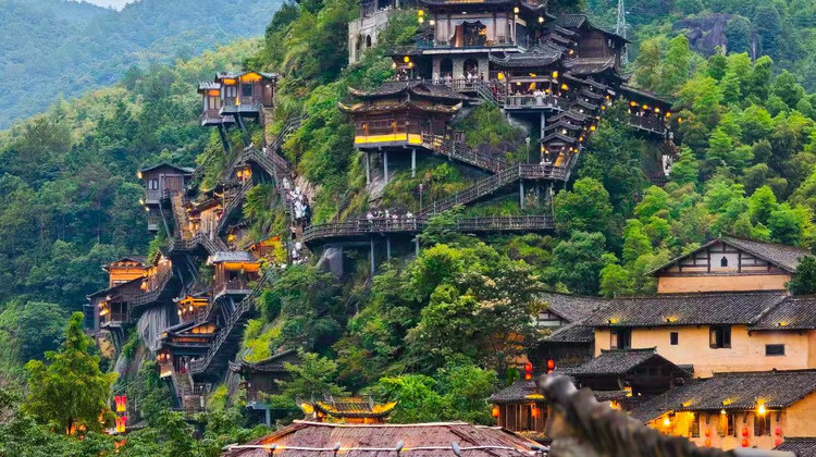 午餐后前往【望仙谷】(门票已含),(车程约3.5小时)位于灵山北侧,藏于山谷之中,青砖石瓦夯土墙的房屋,悬崖上气派且复古的民宿,清幽弯绕的峡谷,依山而建的石阶,水帘悬挂的瀑布,潺潺流水的小溪,站在揽月桥上,望着远方的灵山、近处的白鹤崖,面前小桥流水人家,呼吸着清新的空气,一切都显得格外平静。是集山水人文景观、休闲度假、漂流户外运动、健康美食、民俗体验为一体的新型文旅小镇,【青云桥】一微拱桥因为弧度小,走在上面好像走平地一样,不知不觉中就来到了桥顶,有点“平步青云”的感觉,取这个好彩头, 就得名青云桥。【寻仙路】过了青云桥,再踏青云梯,从此鸿运当头。走在这条寻仙路栈道,既有青石板路,也有峡谷栈道,顺应天然的地形,曲折回转,蜿蜒在九牛峡谷之中。【廊桥】典型的江西风雨廊桥的形态, 桥体采用了抬梁式架构,在立柱上架梁,梁上又抬梁,层层叠落一直到屋脊,各个梁头上再架上檩条同来承托屋椽,结构和工艺十分复杂。【三叠水】是两条溪交汇的地方,一条是发源于高南峰的西坑溪,一条是发源于西高峰的方村溪,在这里可以看到独特的叠水景观三叠水。【白鹤崖】相传女娲修炼五彩石去补天,在补天的过程中,有一些补天石掉落了下来,其中一块就砸在上饶这个地方,砸出了灵山。“一方民俗乐一方人”,这里的民俗文化丰富多彩,桥灯、庙会、傩舞、板龙灯,稻米习俗.人文风情引人注目;结束返回酒店休息!